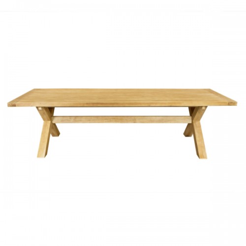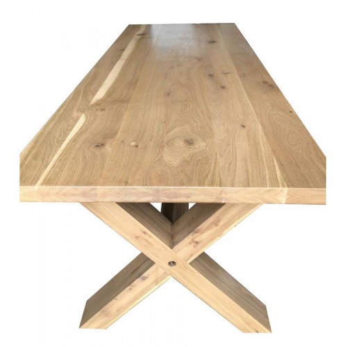 Made from OAK wood, the 10-seater table can support heavily weighted objects and is resistant to wear-and-tear as long as it is maintained correctly. It is advised that the table be kept beneath a covered patio area only. Solid Table, A leg, 2.4 x 1m x 750cm (Height), Thickness (70mm), Oregon Pine Wood, Dead Flat finisher.